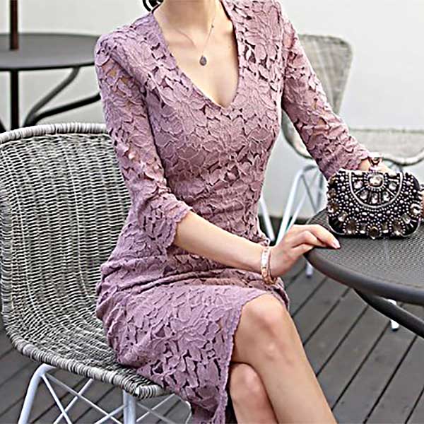 レース セクシー パープル 紫 総レース 七分袖 20代 30代 40代 50代