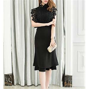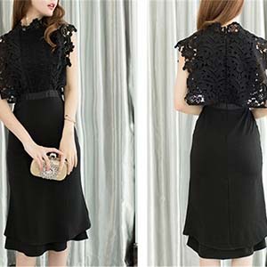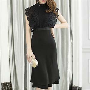 ブラック レース 膝丈のタイトワンピース[OH30]