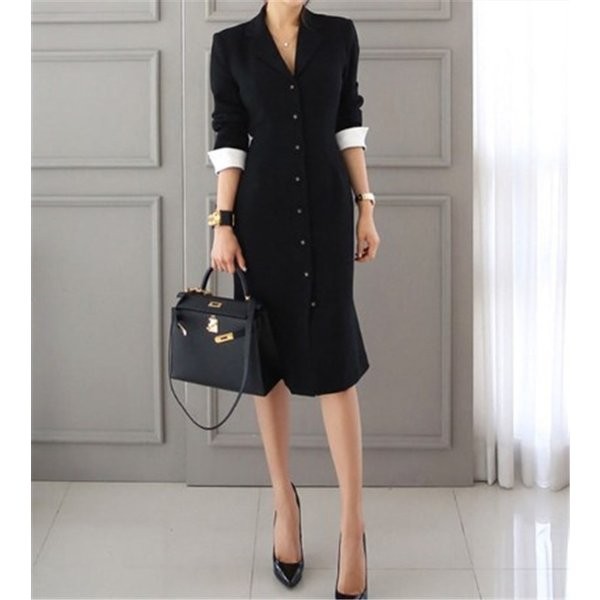 import placeholder for oh40テーラード風の襟と白カフスのタイトのパーティーワンピース[OH40]