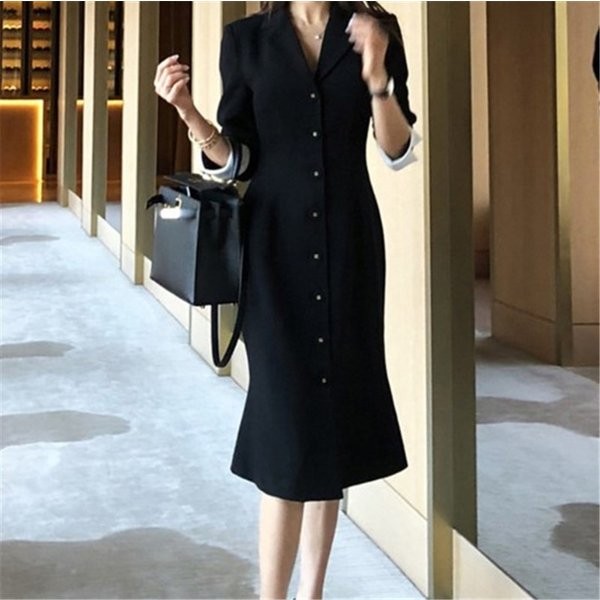 テーラード風の襟と白カフスのタイトのパーティーワンピース[OH40]