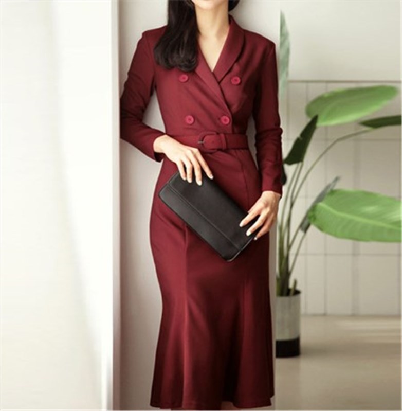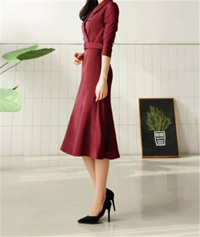 上品 ワイン ネイビーのタイトワンピース[OH41]
