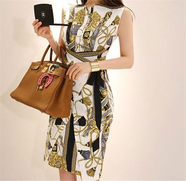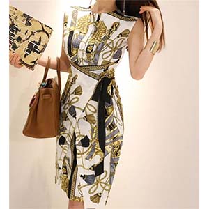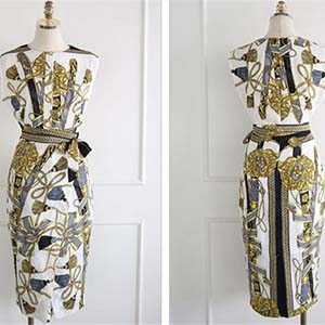 お洒落着・スカーフがらのタイトワンピース[OH64]