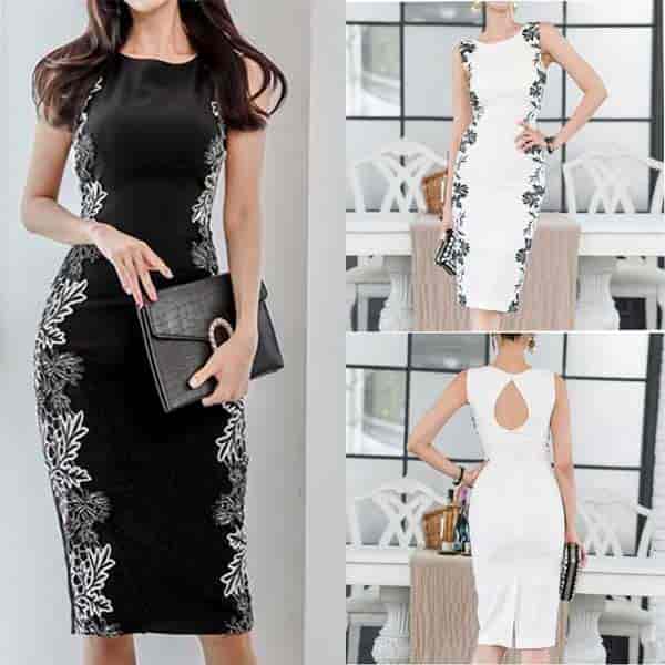 背中開き サイドも素敵なタイトワンピース[OH74]