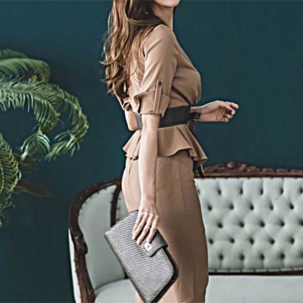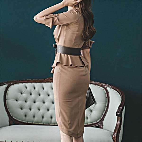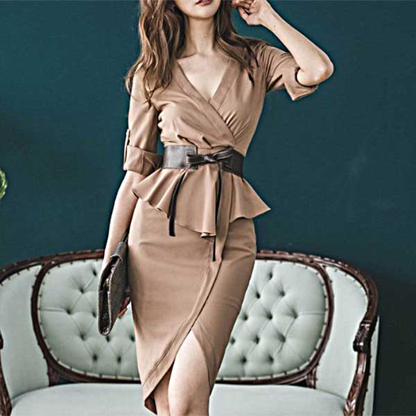 セクシーなブラウン カシュクールのタイトワンピース[OH86]