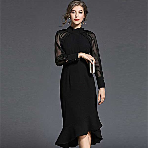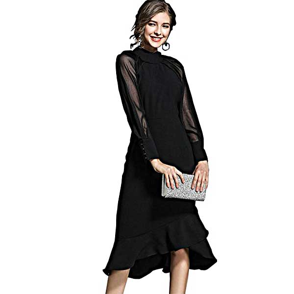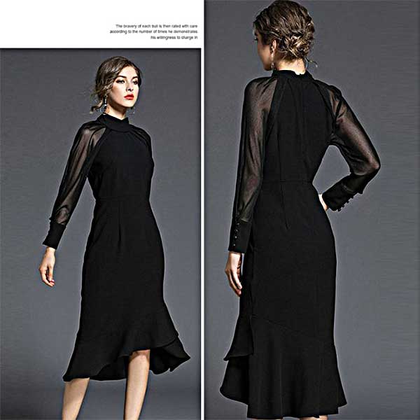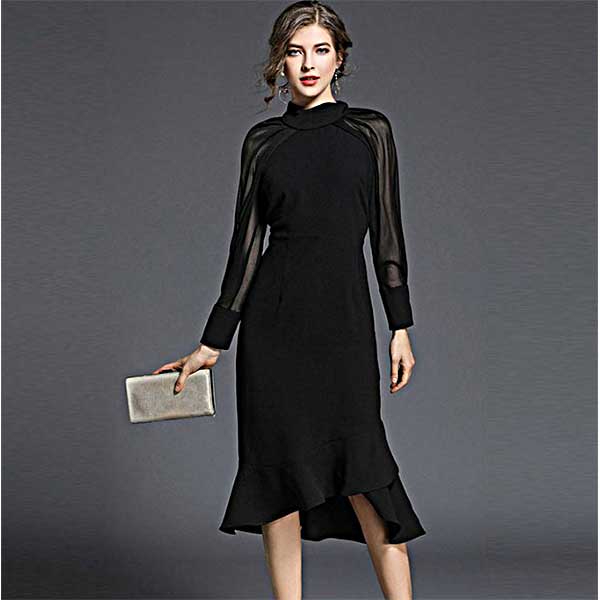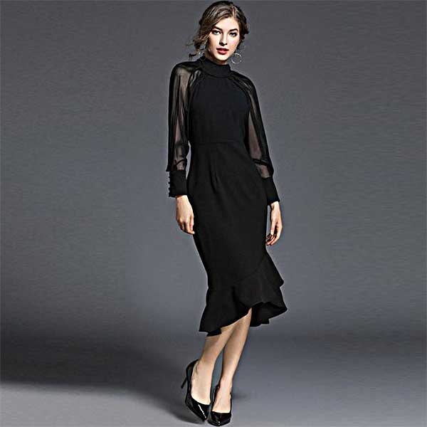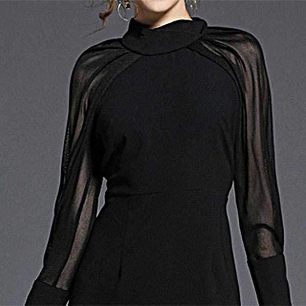 黒 ハイネックとシースルー袖が素敵なタイトワンピース[ON130]