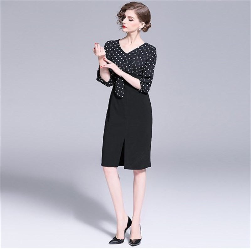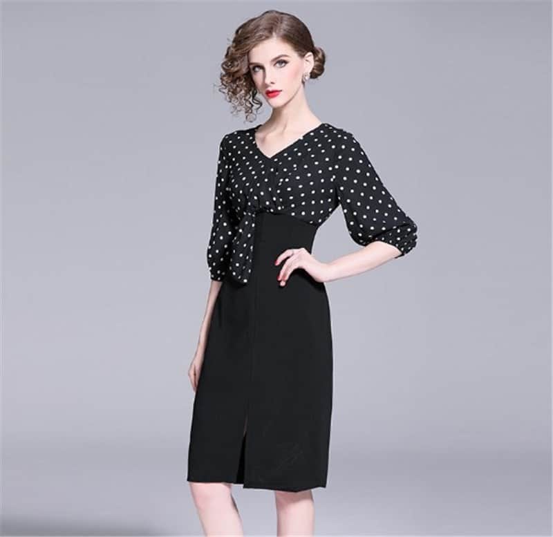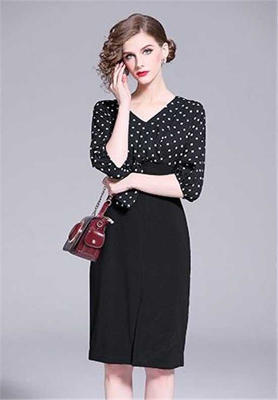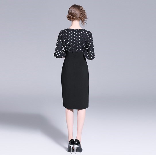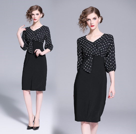 & Free Shipping大人可愛いドット柄 着痩せ効果のある