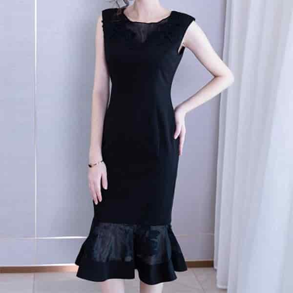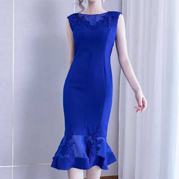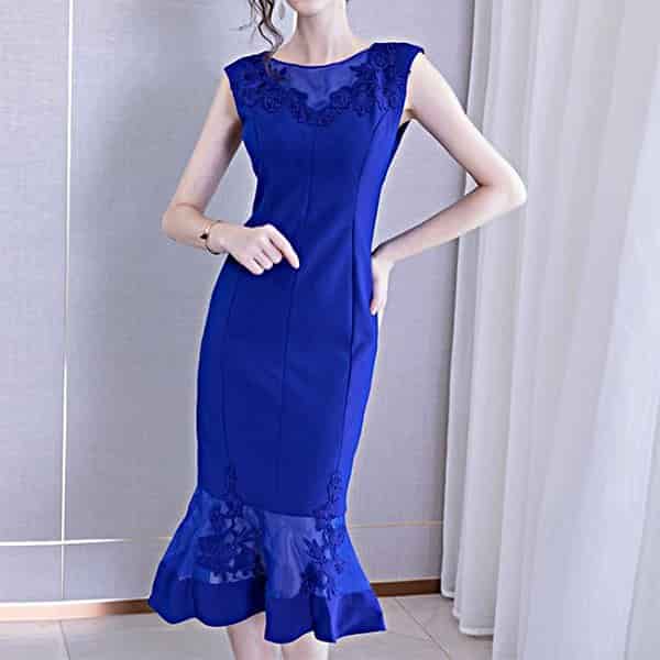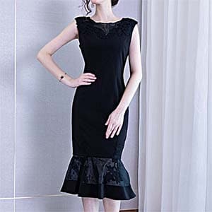 高級感あるブラック ブルー 大人のマーメイド タイトワンピース[ON215]