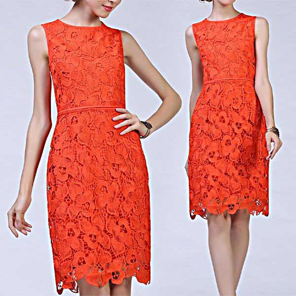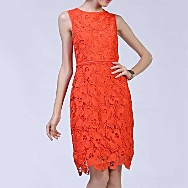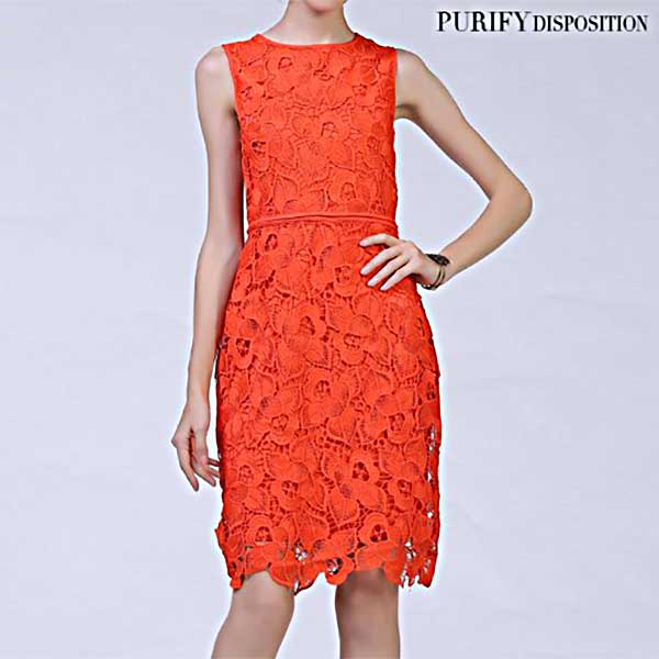 綺麗なオレンジ レースのタイトワンピース[OO77]