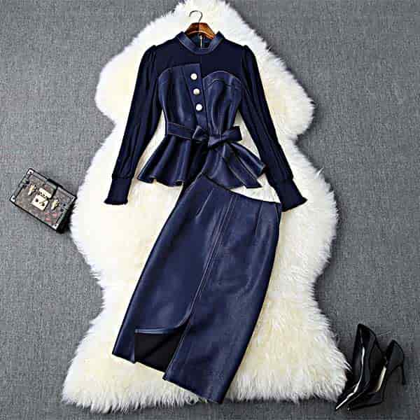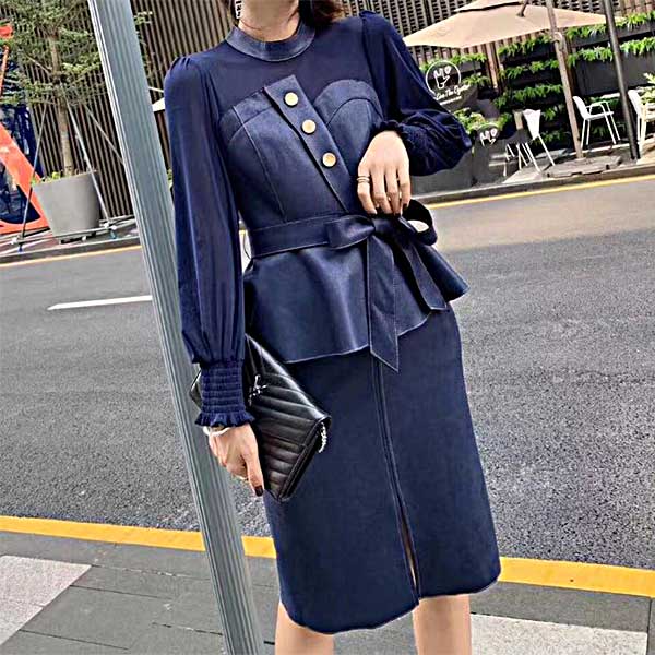 お洒落なセットアップ ネイビーのタイトスカート[OY135B]