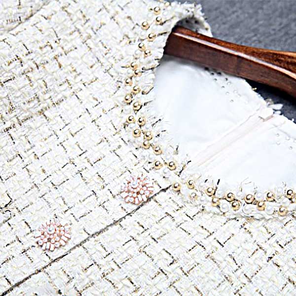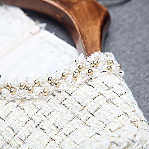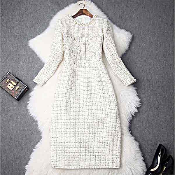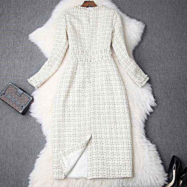 ツイード 白 大人の上品なタイトワンピース[OY136]