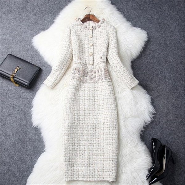 エレガントな女性は持っている ツイードのタイトワンピース[OY73]